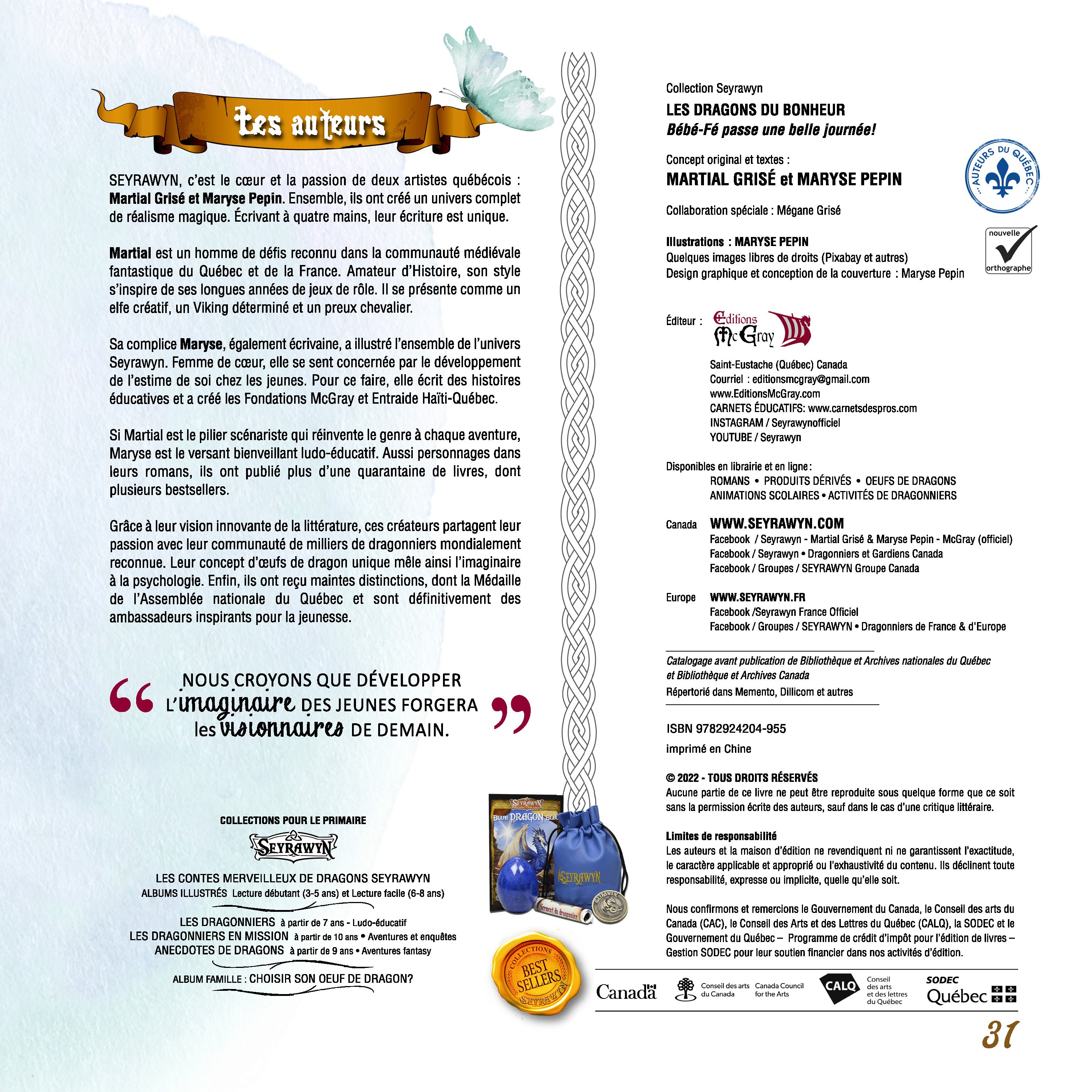 Les dragons Seyrawyn partagent leur magie avec leur dragonnier. Il y a 10 races avec 10 forces différentes. Comment alors choisir son meilleur ami? … Avec son coeur! Voici des contes pour aider les enfants à les reconnaitre et apprendre à se connaitre en même temps!